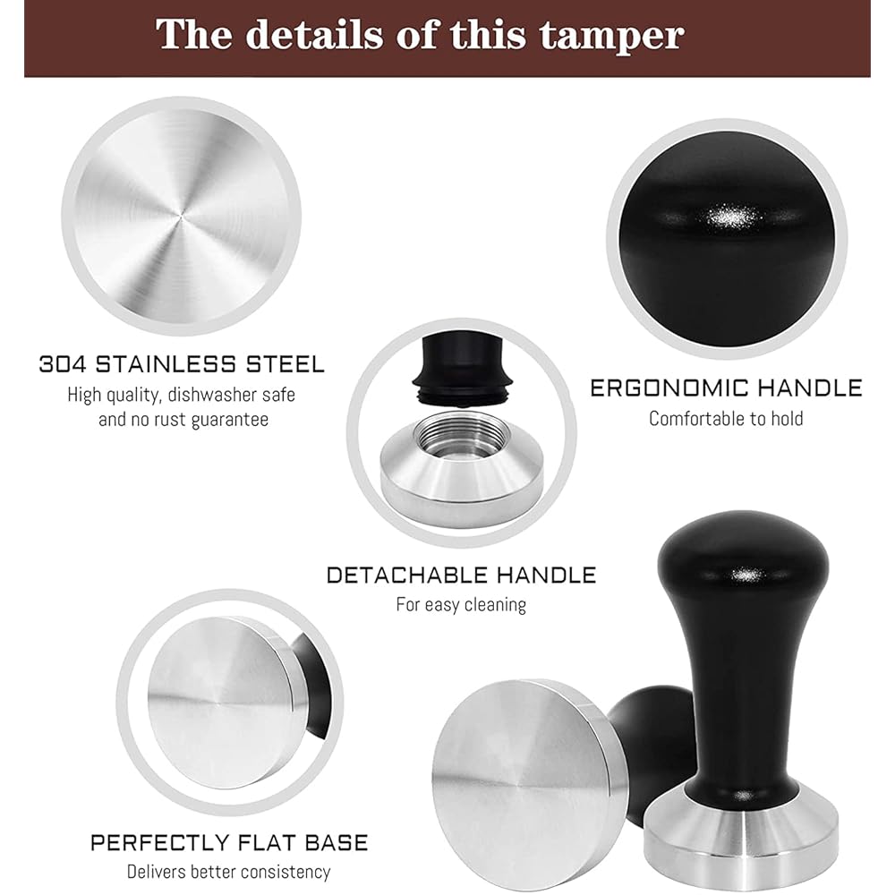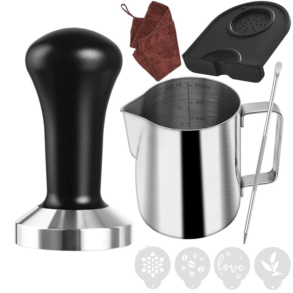 에제베스타 51mm 커피 탬퍼 세트 커피 프레스 포타 필터 머신 에스프레소 탬퍼 매트 프로스팅 피처(350ml