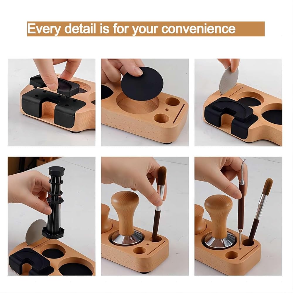 IAOSEN 에스프레소 탬핑 스테이션 우드 커피 탬퍼 스테이션 에스프레소 탬퍼 오거나이저 에스프레소 탬퍼