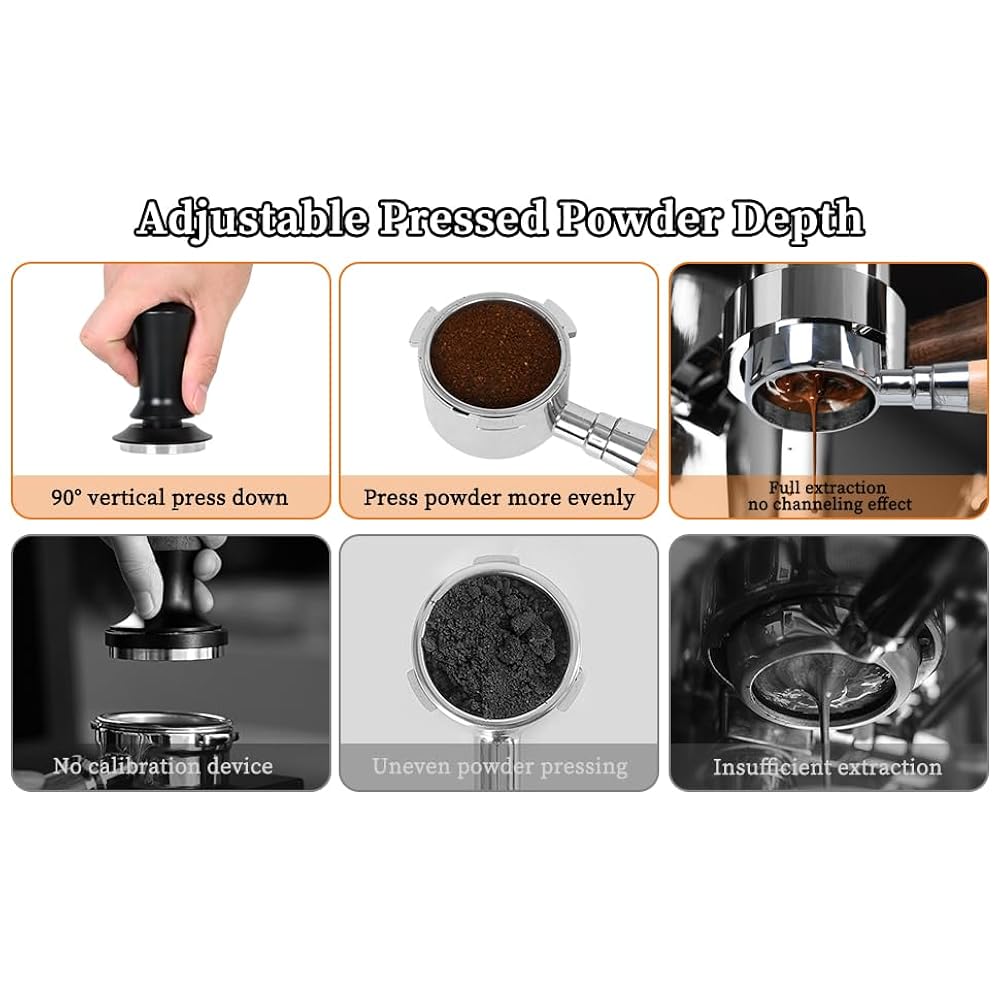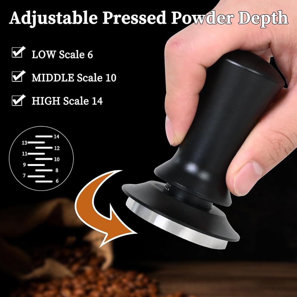 프로 마엘 53mm 에스프레소 핸드 변조기 스프링 로딩 보정 깊이 조절 가능한 에스프레소 머신용 커피 변조