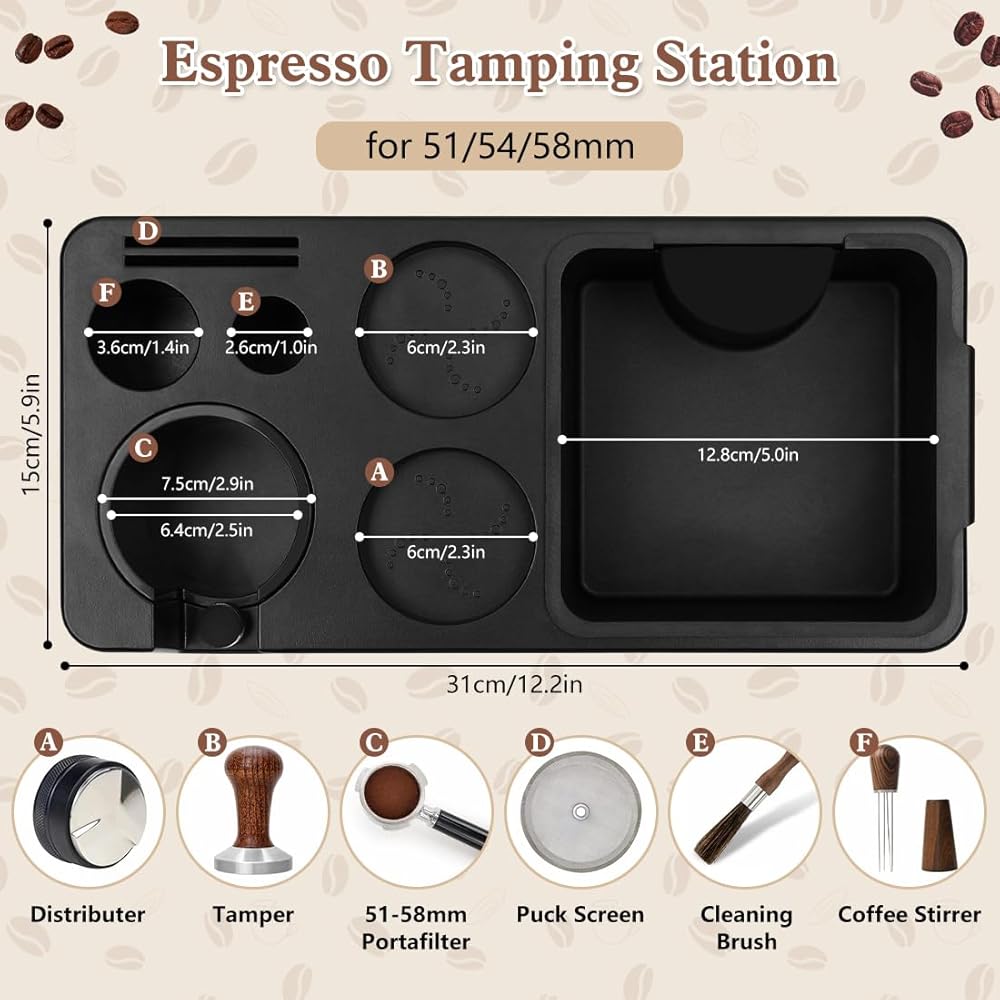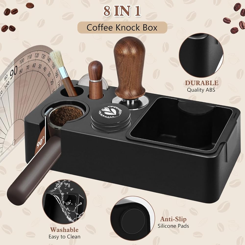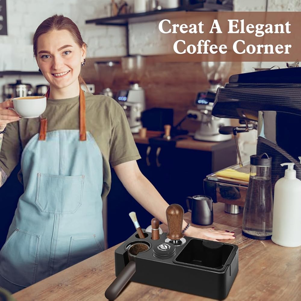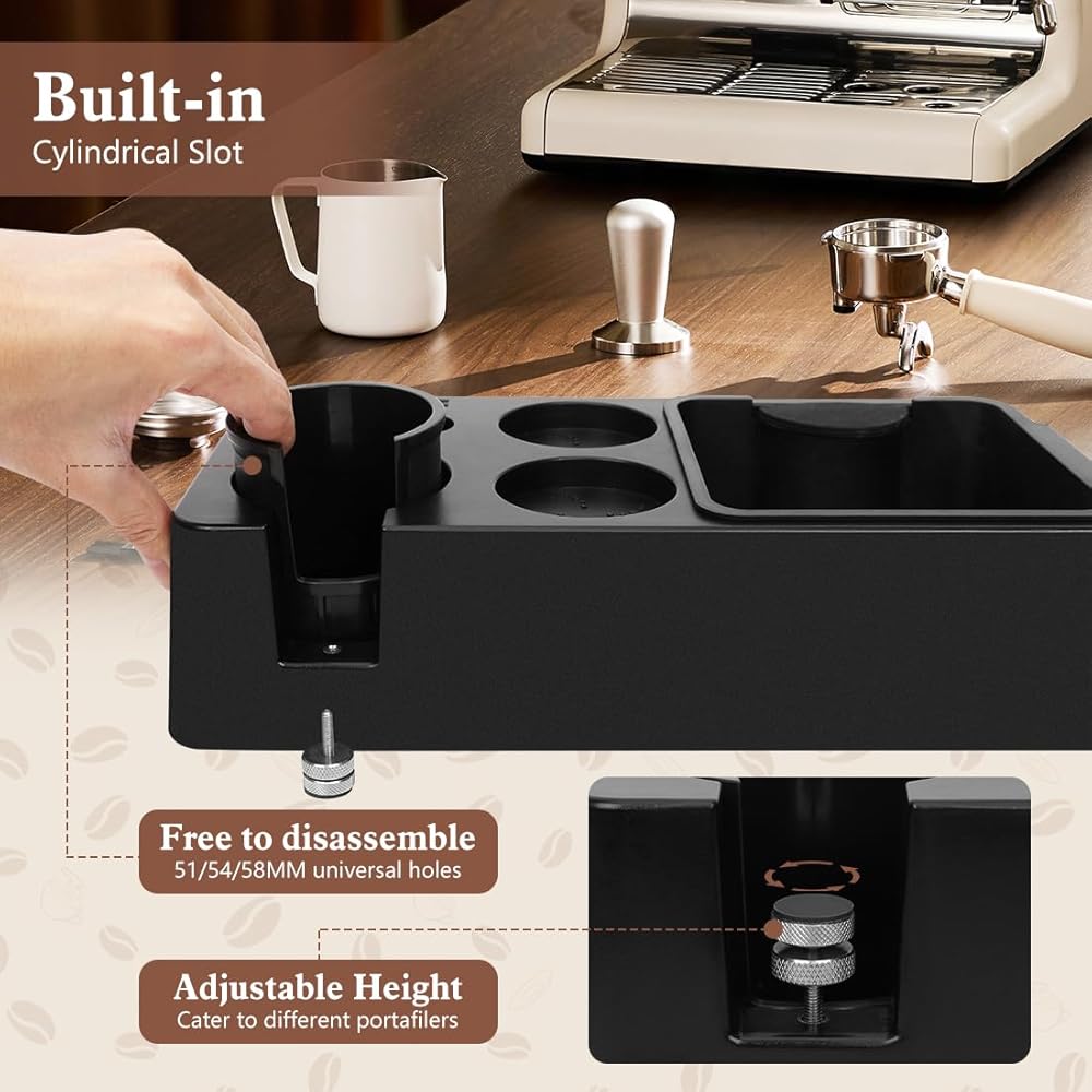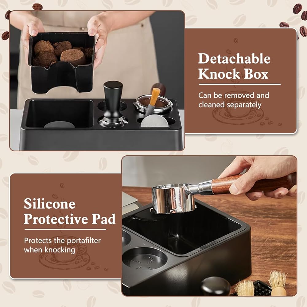 Y-Step 에스프레소 노크 박스 8 in 1 에스프레소 탬핑 스테이션 ABS 커피 탬퍼 스테이션 베이스 에스프레소
