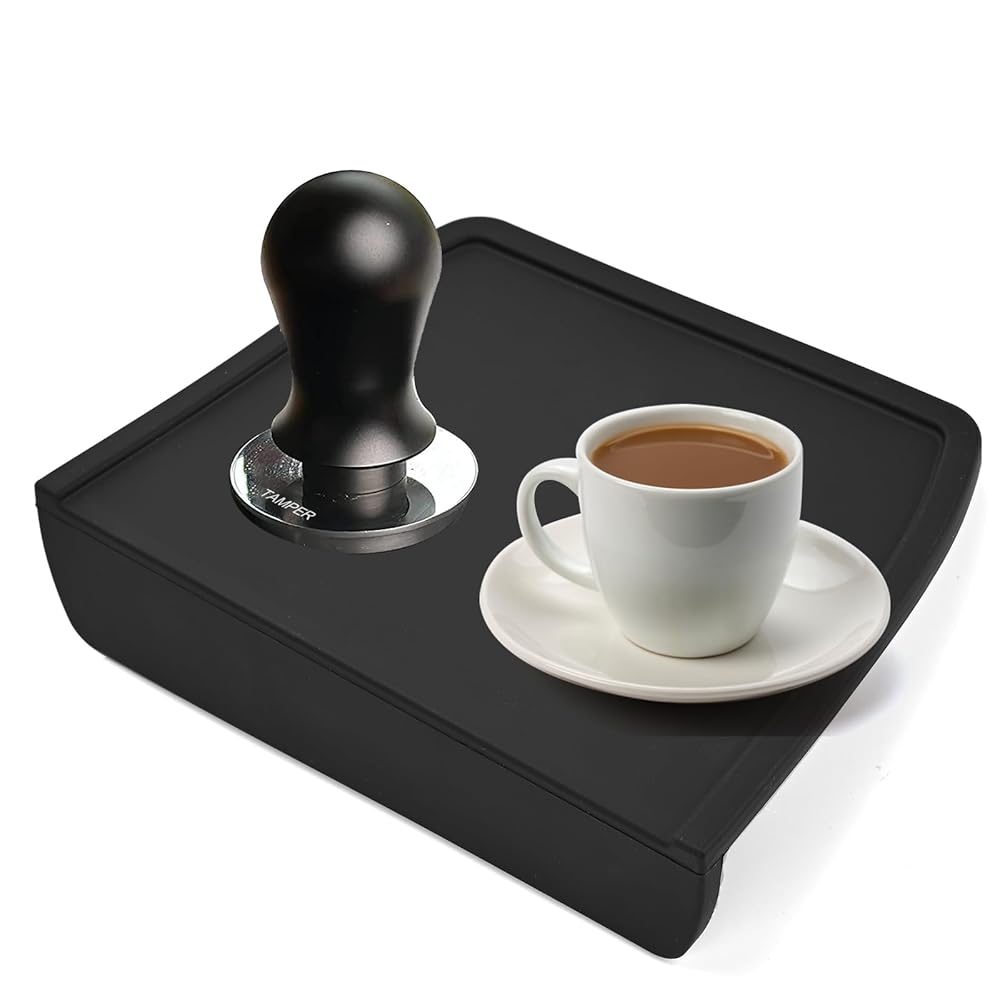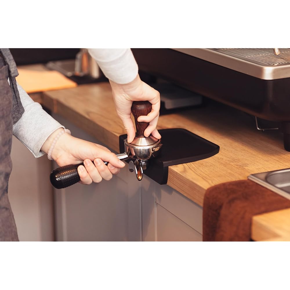 에스프레소 탬퍼 매트 블랙 실리콘 탬퍼 매트 바리스타 도구를 위한 모서리 탐퍼 지원 스테이션이 있는
