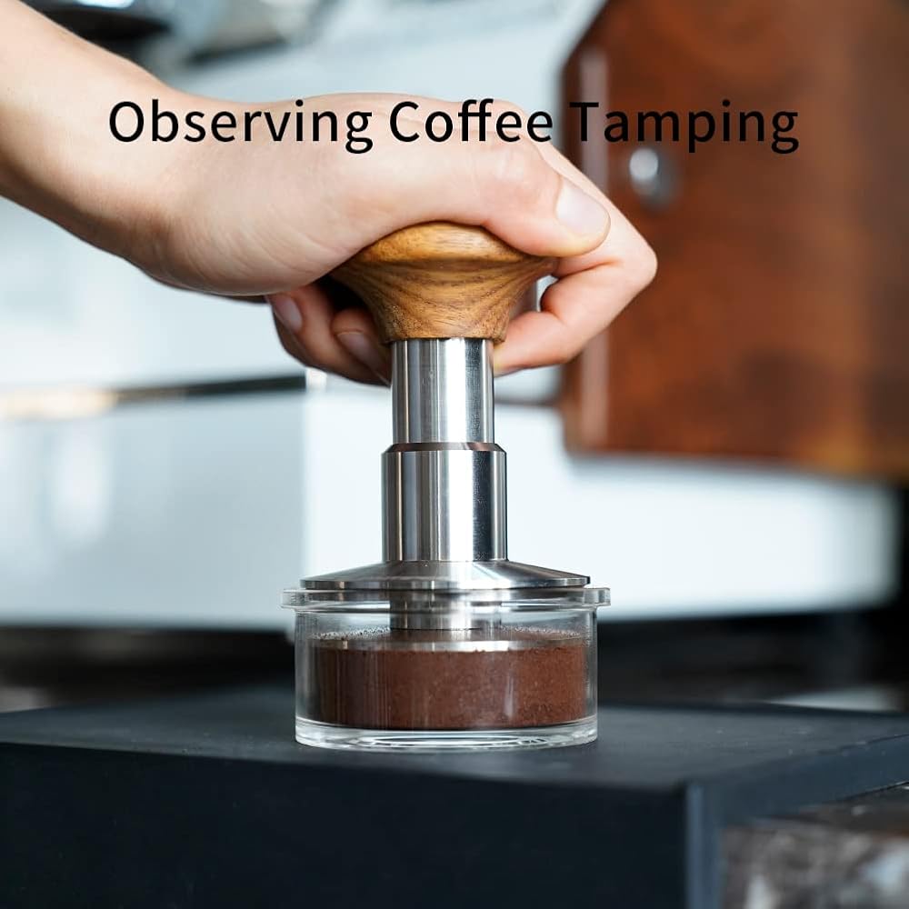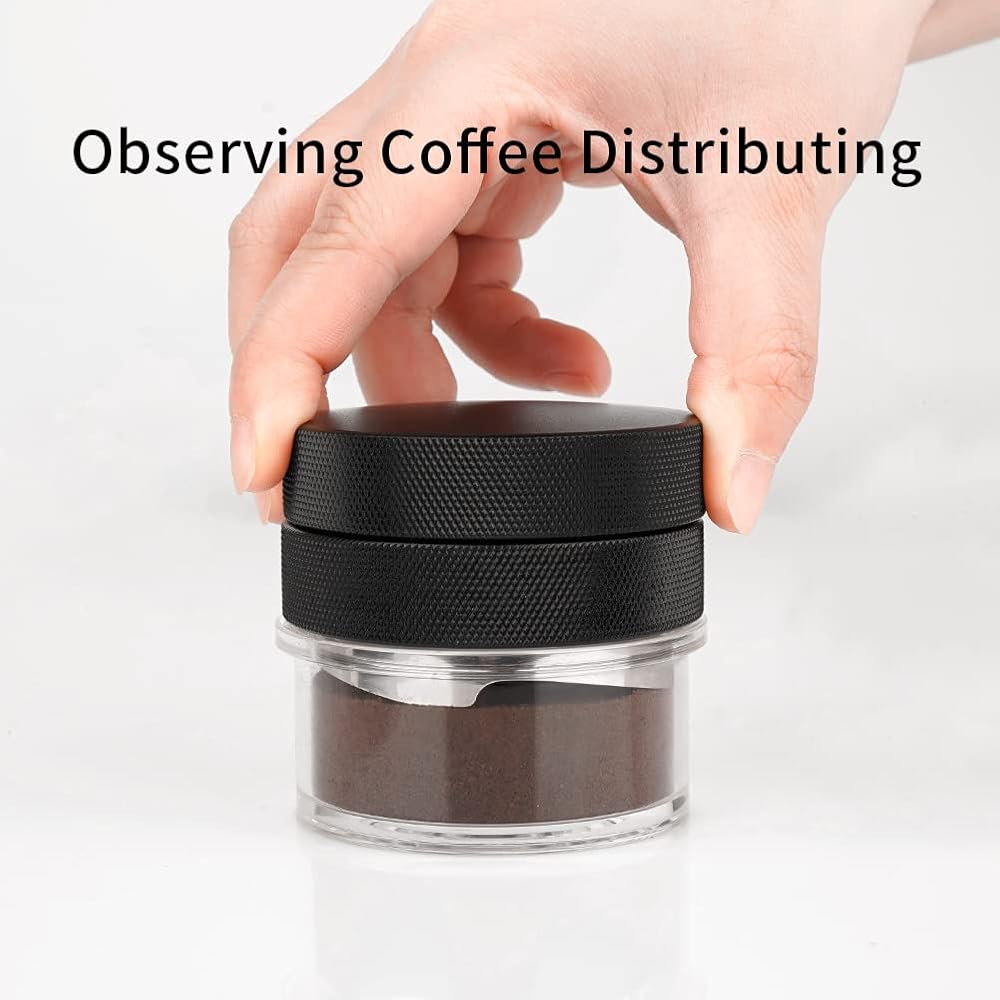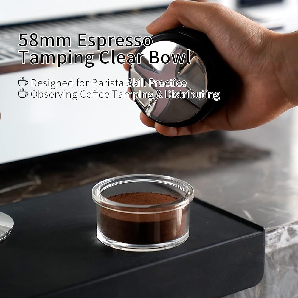 58mm 에스프레소 탬핑 클리어 볼 중력 분배기 스탠드 에스프레소 탬퍼 홀더 스탠드 밀봉하여 커피 탬핑 및