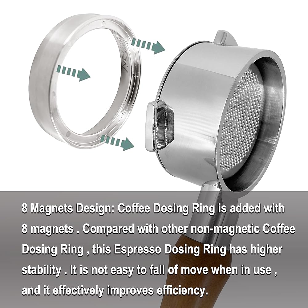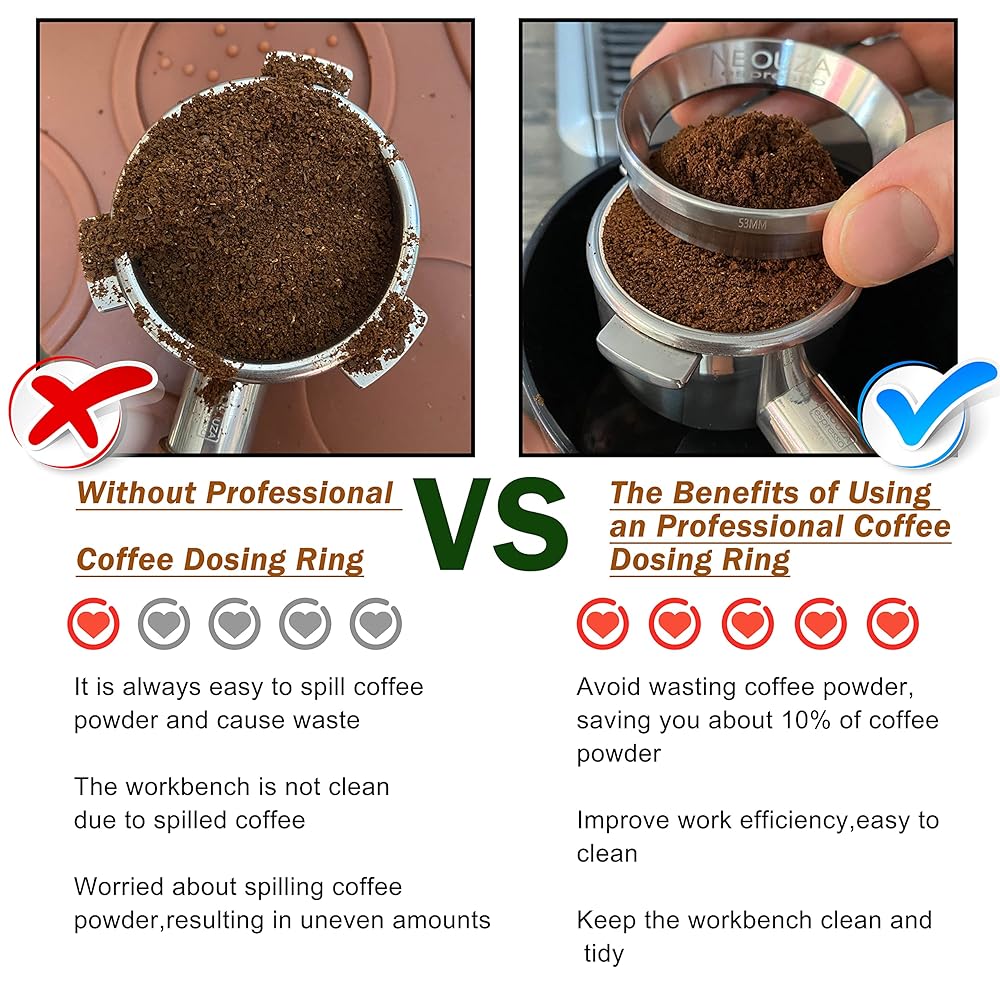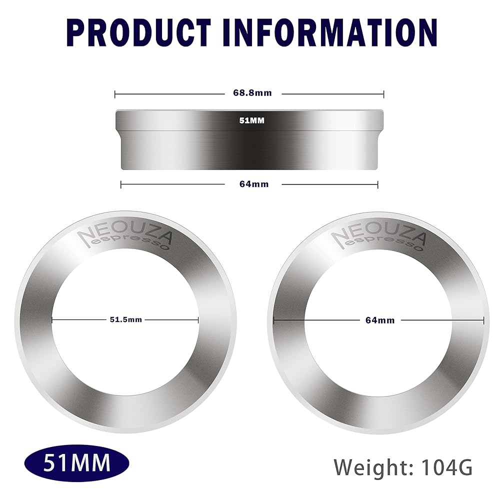 탬핑용 커피 머신 포터 필터와 호환되는 네오우자 에스프레소 도징 깔때기 링 스테인리스 스틸 (51mm)
