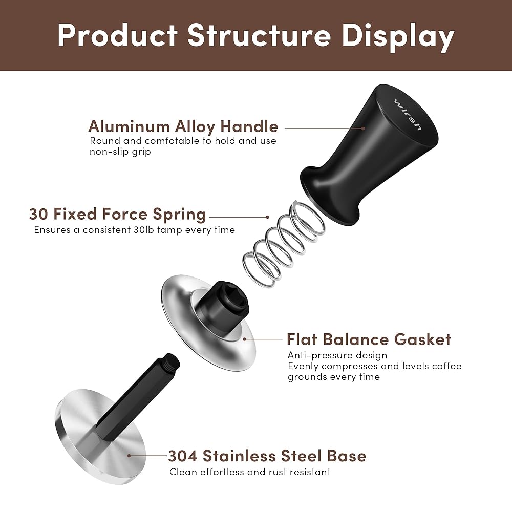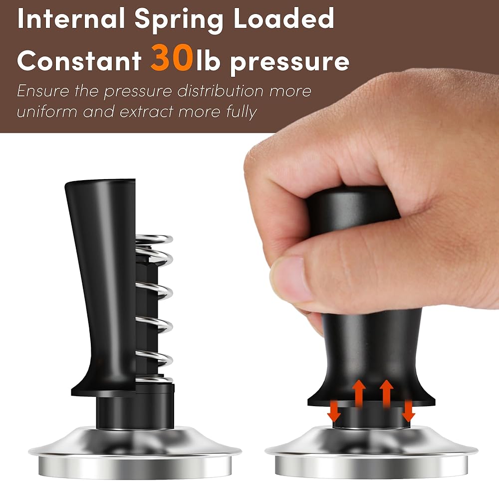 에스프레소 변조기 51mm 워시 스프링 로딩 30파운드 정압 변조기 51mm 포터 필터 바구니용 스테인리스
