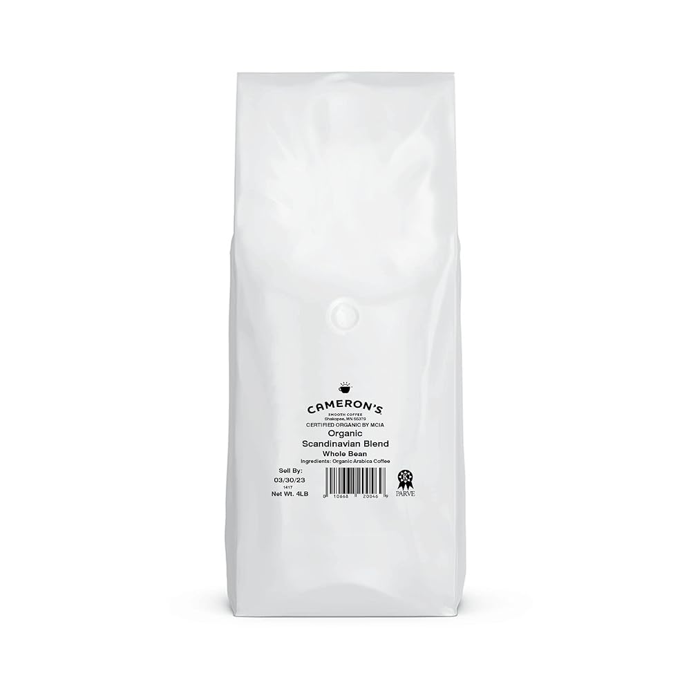 카메론 커피 유기농 스칸디나비아 블렌드 홀빈 커피 미디엄 다크 로스트 100% 아라비카 벌크 4파운드 백 (1