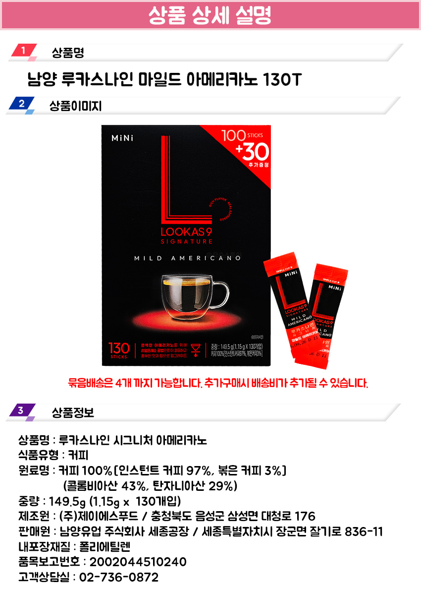 남양 루카스나인 아메리카노 마일드 130T 1개