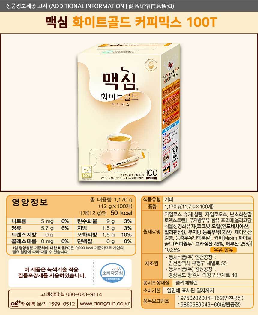 맥심 맥심 화이트골드 100T+100T 총 200T /커피믹스/화이트커피/무료배송