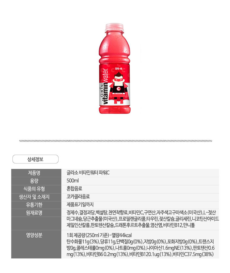 상품명 : 글라소 비타민워터 파워씨500ml 12개입