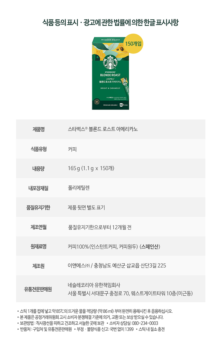 스타벅스 프리미엄 파우더커피 블론드 로스트 150T
