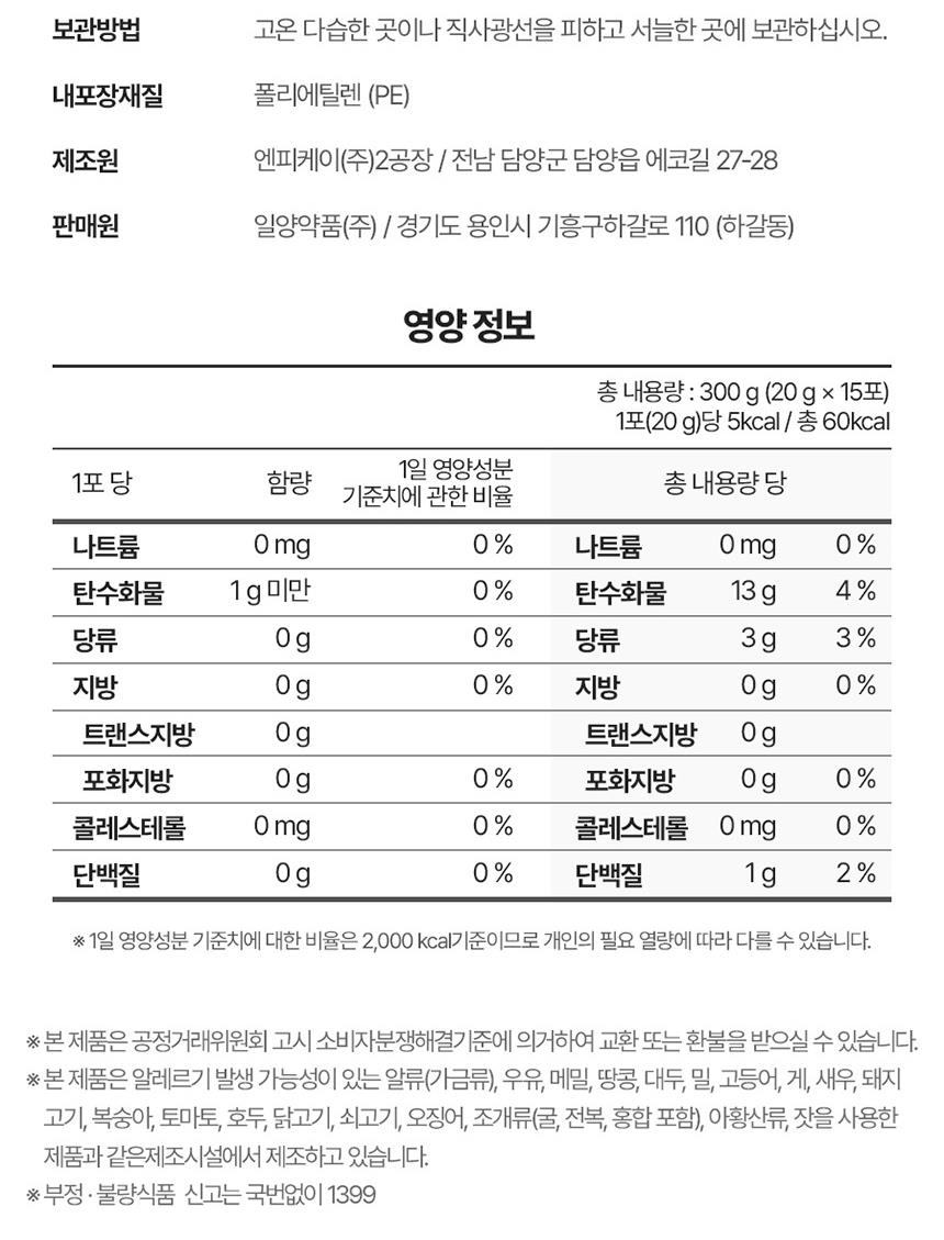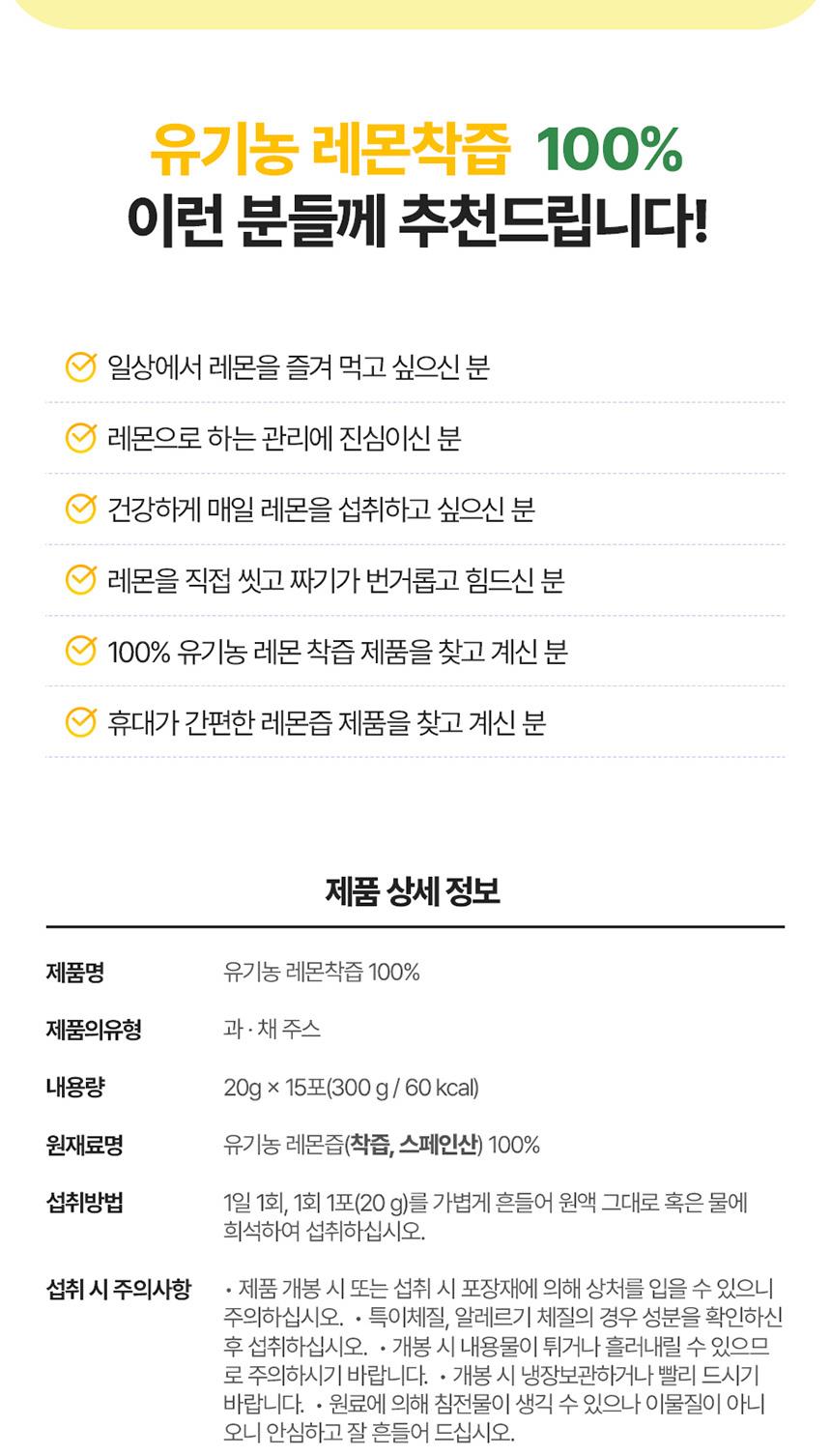 일양약품 유기농 레몬착즙 100% 20g x 15포