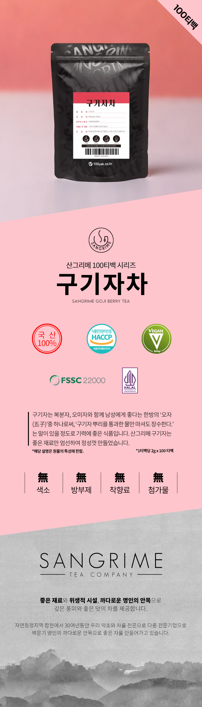산그리메 국내산 구기자차 100티백 대용량 삼각티백차