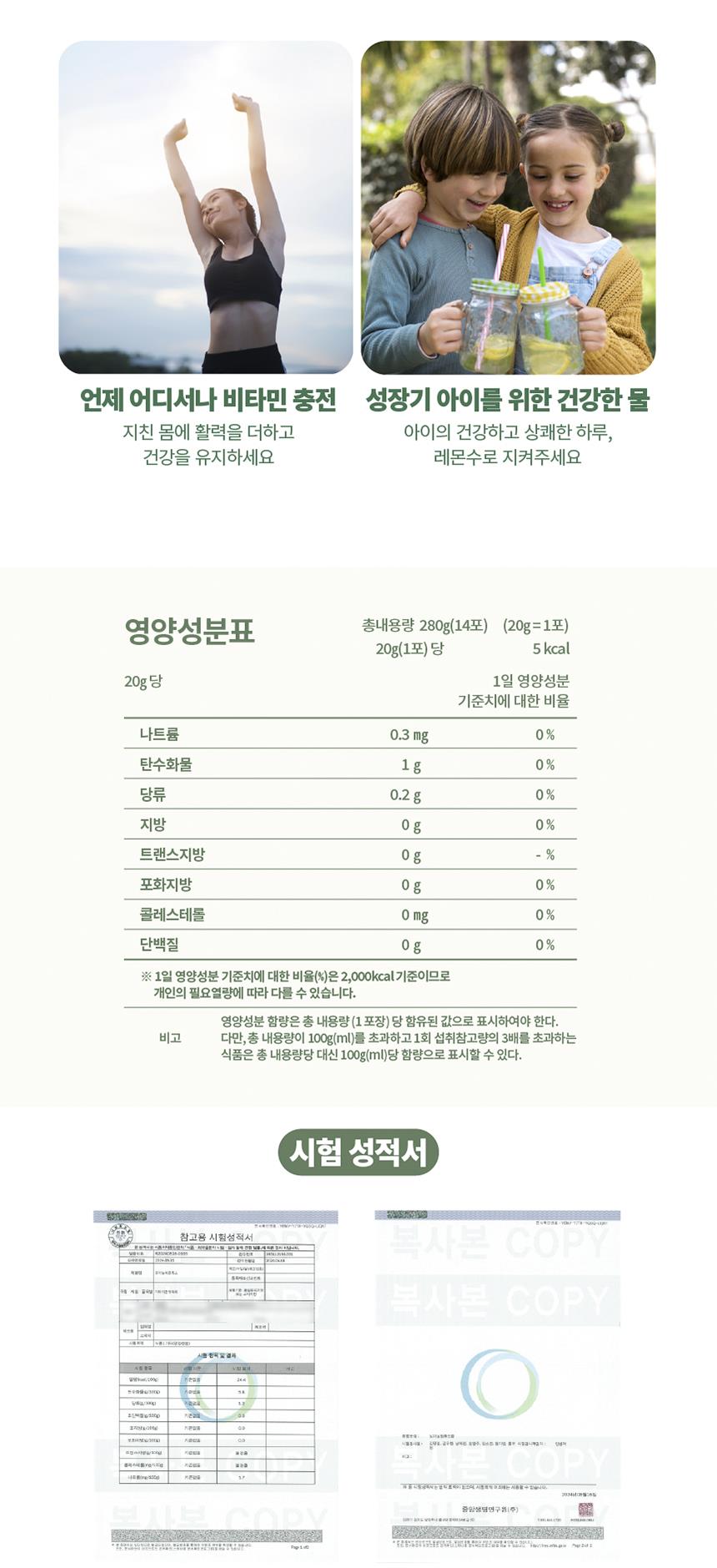 이탈리안 레몬즙 20g 14포 레몬농축 레몬과즙 과일즙 식단관리