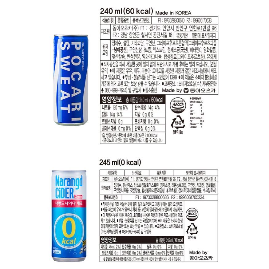 팬트리 탕비실 편의점 동아오츠카 포카리 240ml 12캔 + 나랑드 3종 플레인,그린애플,파인애플 250ml 각 6캔 패키지(총30캔) 에너지 이온음료 헬스장 1세트