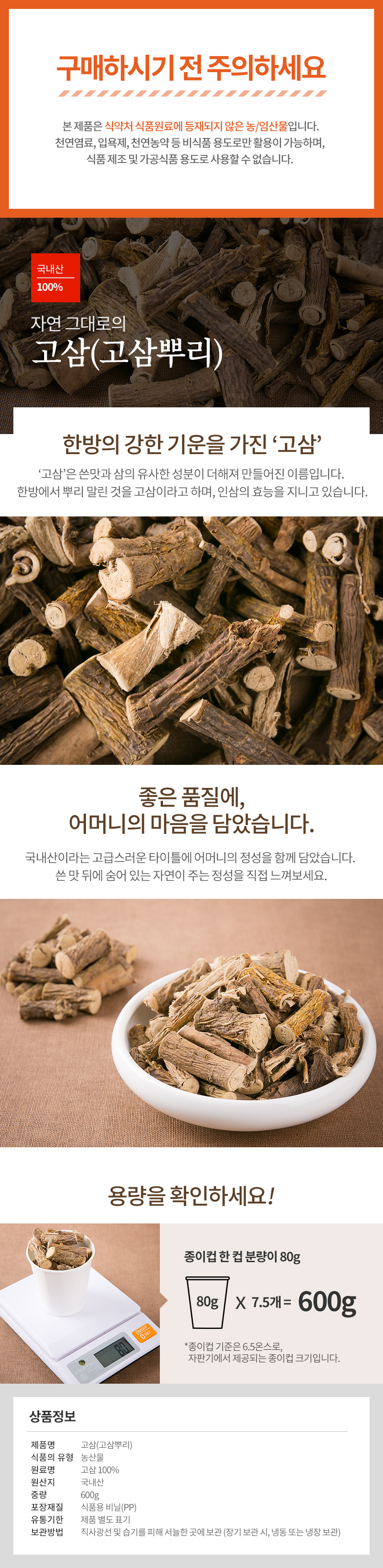 한방 말린뿌리 고삼 600g 쓴맛 약재 건강 영양 가정
