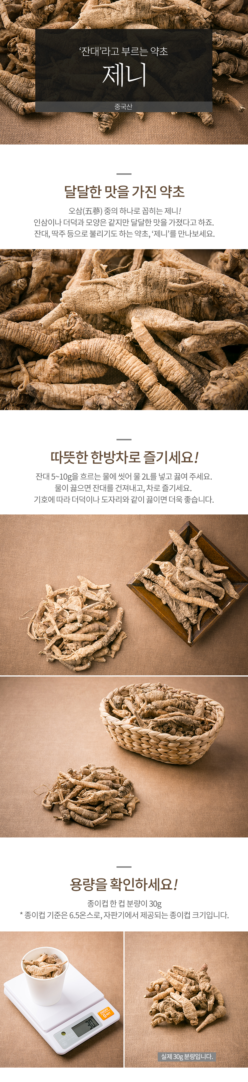 약초 잔대 제니 300g 건조 한방차 건강 달달한맛 수입 약재
