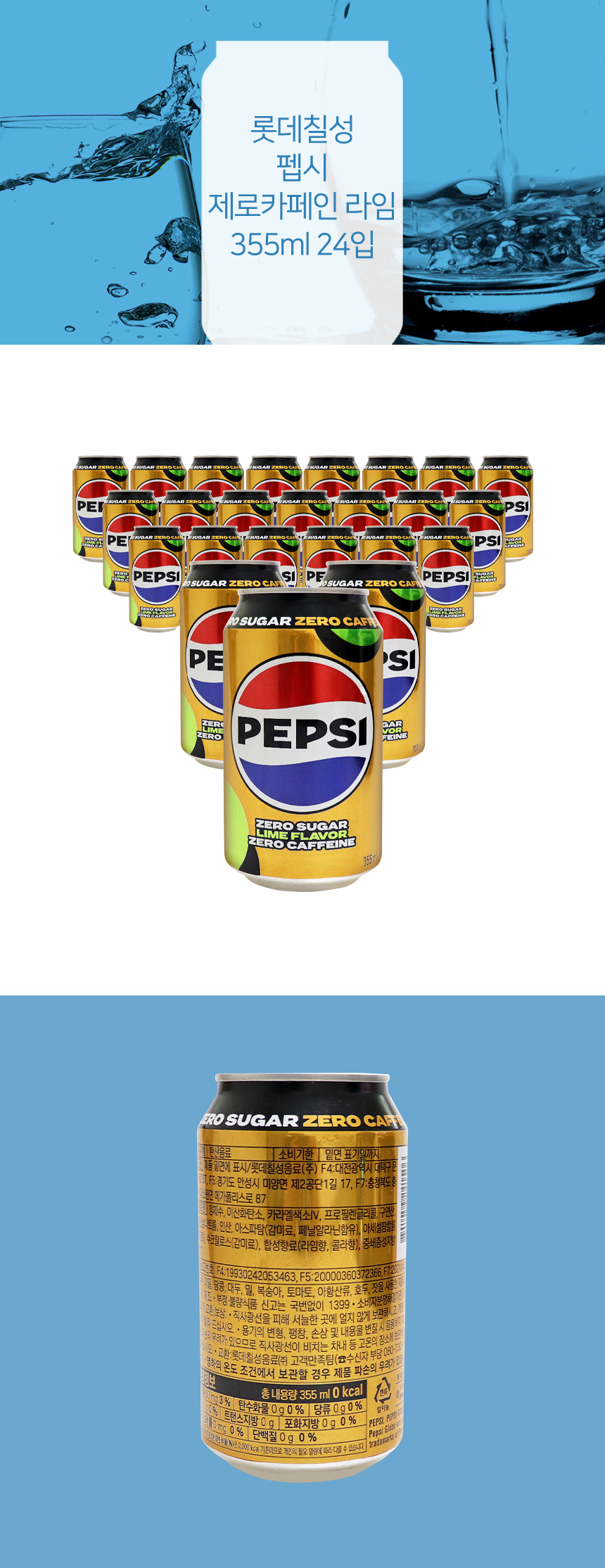 롯데칠성 펩시 제로카페인 라임 355ml 24입