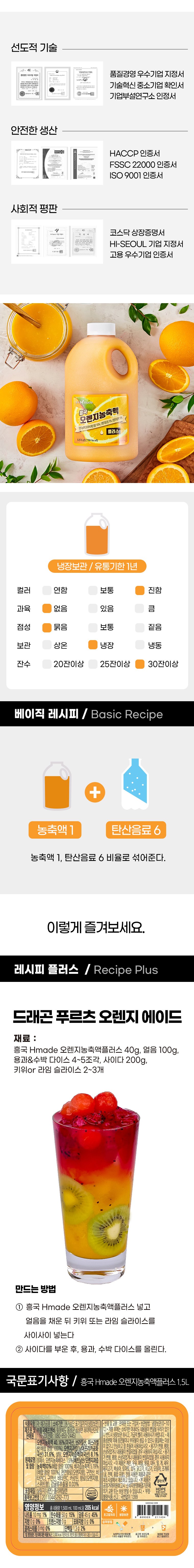 흥국 오렌지 농축액 플러스 1.5L