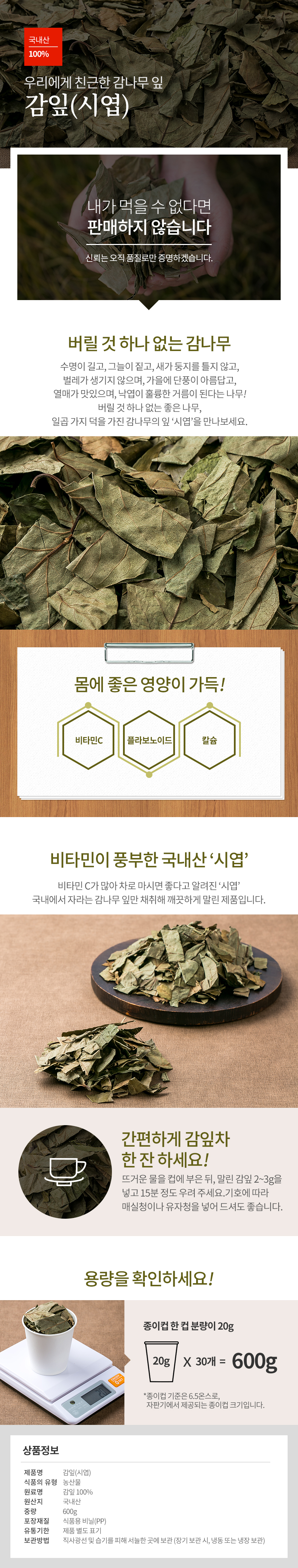 국내산 감나무잎 전통 영양 시엽 600g 감잎차 비타민 한약재