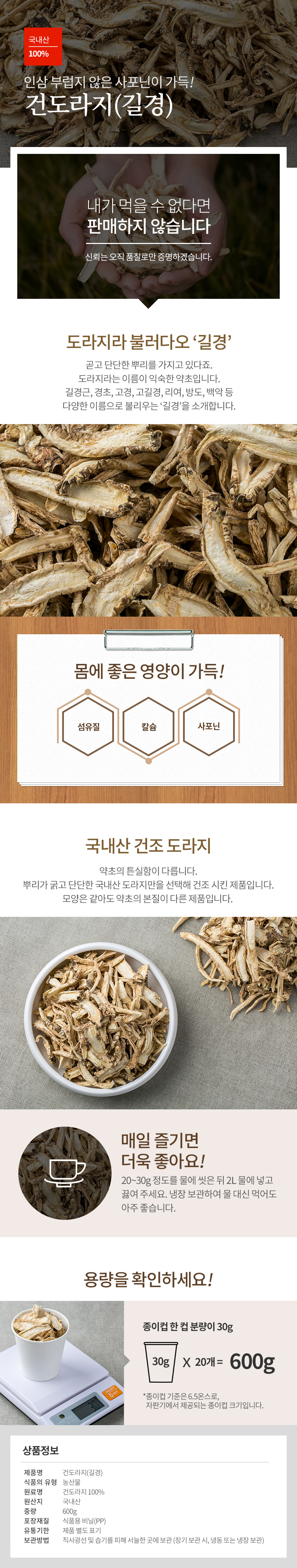 건조 도라지 600g 국내산 사포닌 함유 도라지차 각종 요리 육수로 활용