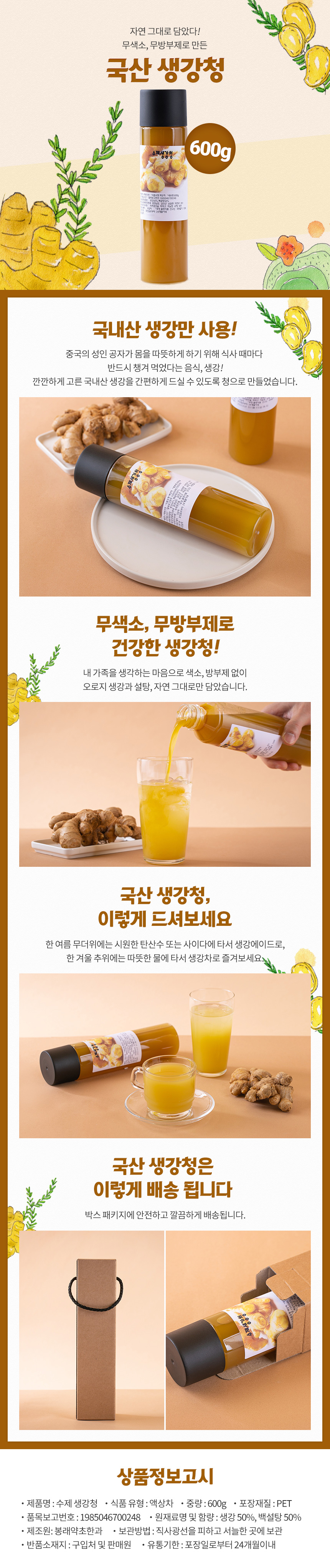 수제 생강청 생강차 600g 무색소 무방부제 국내산