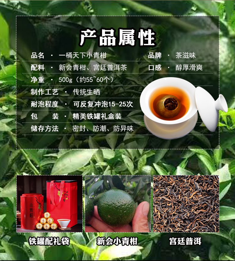 | 재료 목록 | 작은 녹색 감귤류 / 푸에르 차 |
