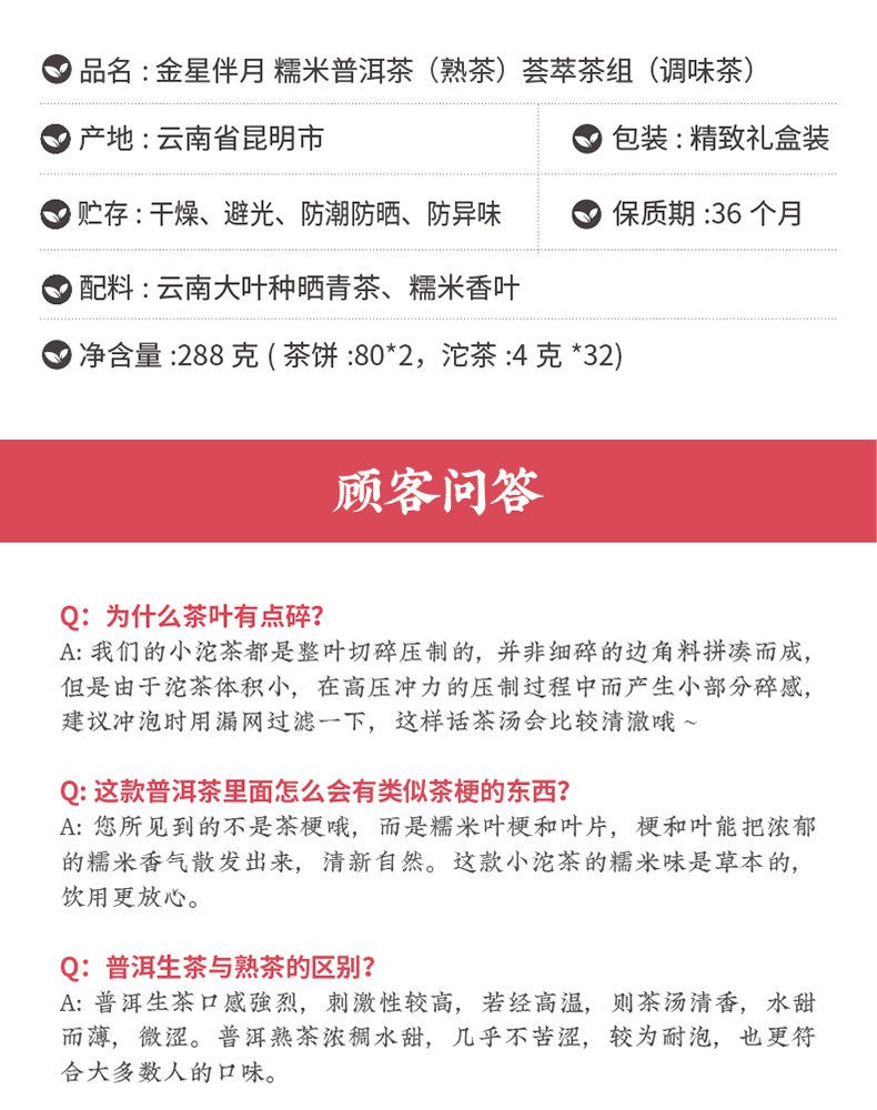 | 재료 목록 | 윈난의 큰 잎은 녹색 차와 쌀 잎을 태닝합니다 |