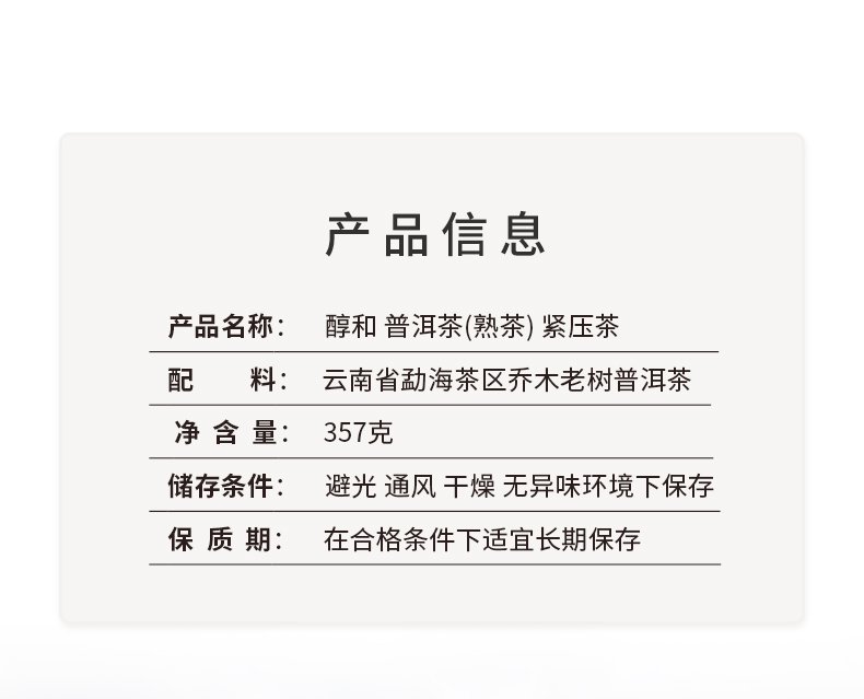 | 시리즈 | 2020 알코올 및 푸에르 차 357g |
