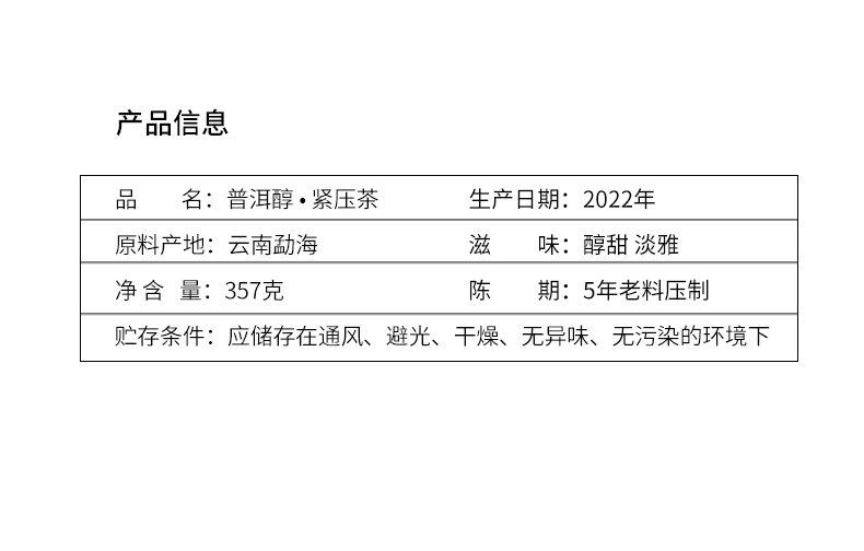 | 성분 목록 | 운남 큰 잎 종 푸에르 익은 차 |
