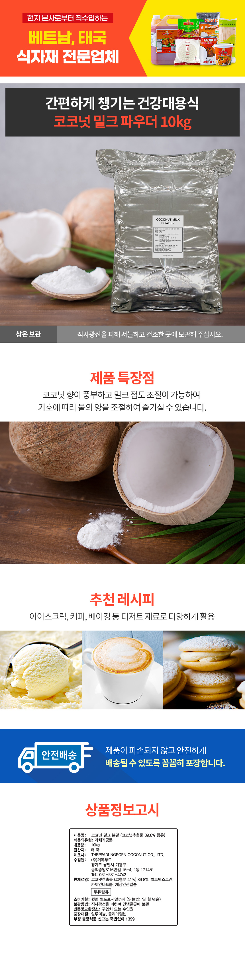 대용량 코코넛 밀크 파우더 10kg 건간대용식 디저트 재료 태국식재료