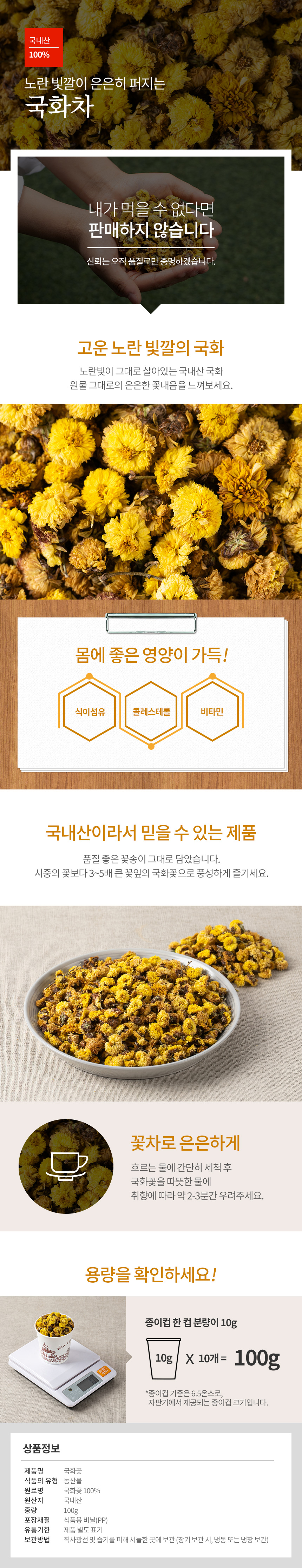 국내산 국화꽃 100g 은은한 꽃향 건조 말린 약초 꽃차