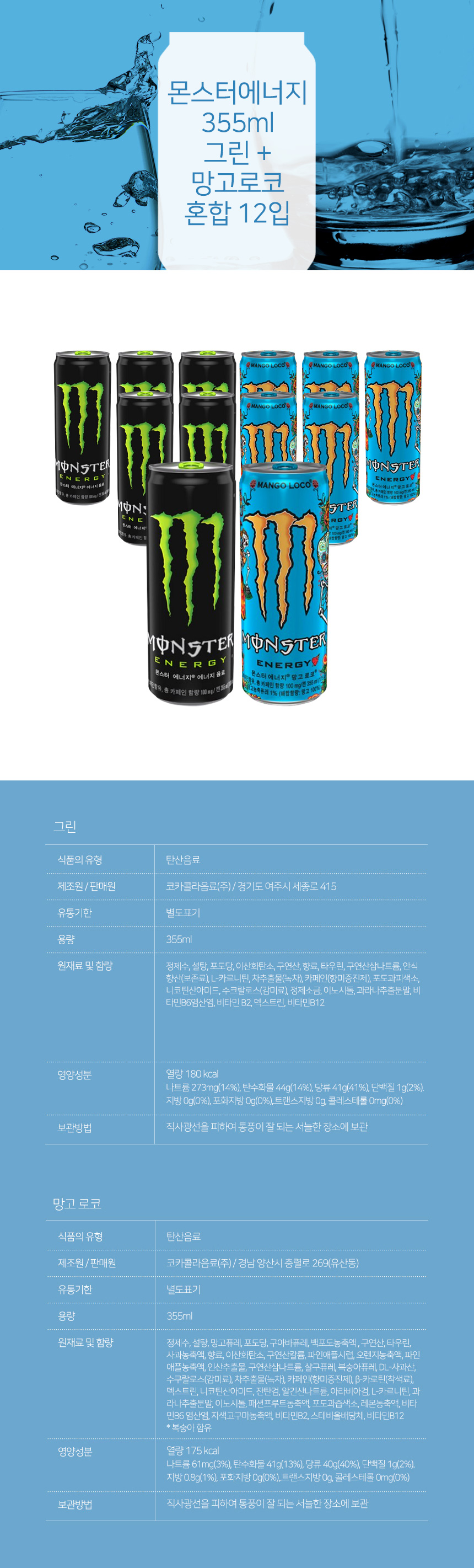 몬스터에너지 355ml 그린 + 망고로코 혼합 12입
