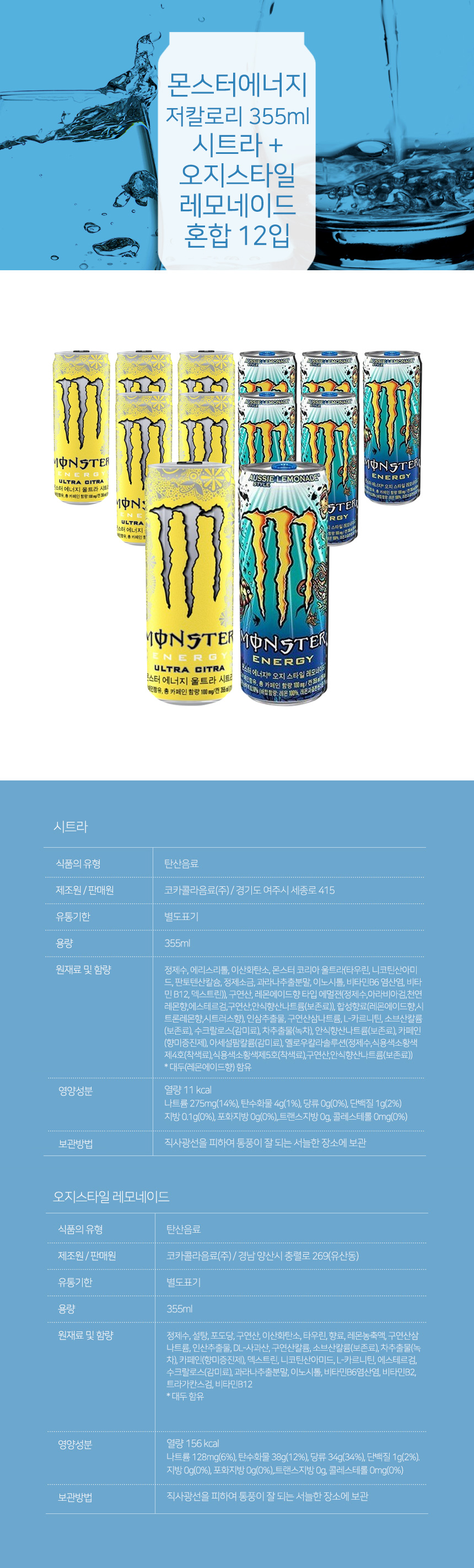 몬스터에너지 저칼로리 355ml 시트라 + 오지스타일 레모네이드 혼합 12입