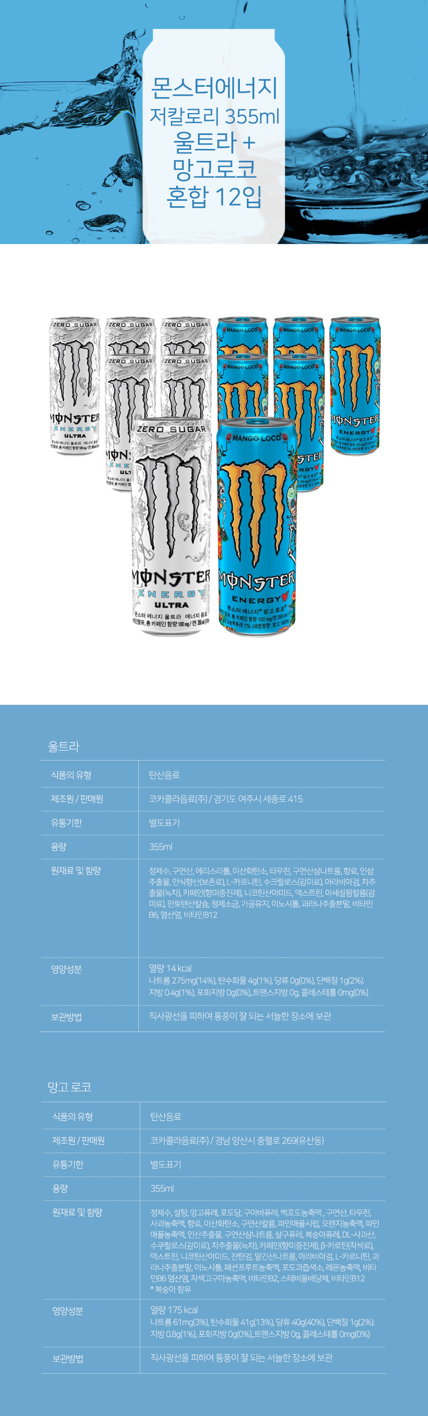 몬스터에너지 저칼로리 355ml 울트라 + 망고로코 혼합 12입