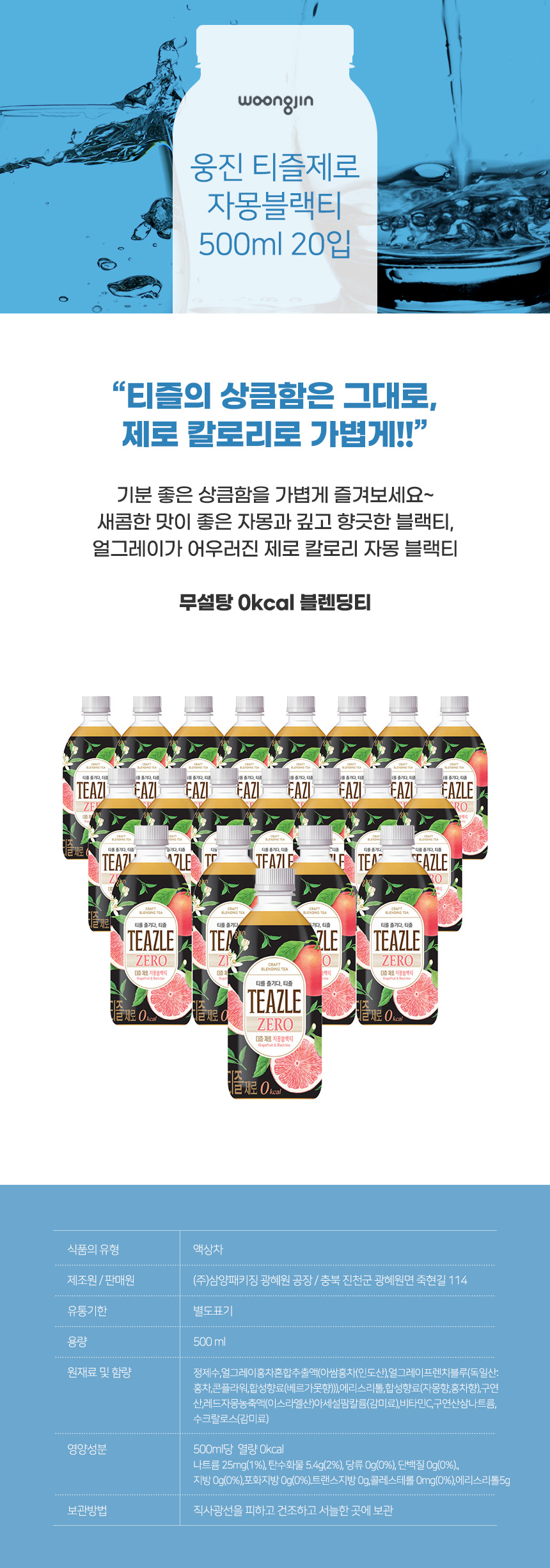 웅진 티즐제로 자몽블랙티500ml 20입