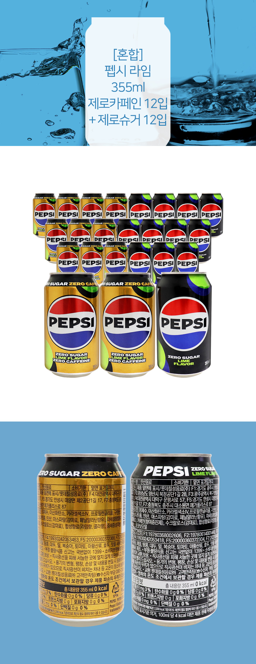 롯데칠성 펩시 라임 355ml 제로카페인 12입+ 제로슈거 12입