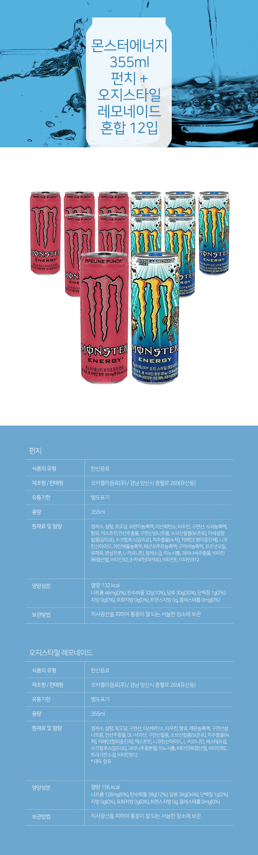 몬스터에너지 355ml 펀치 + 오지스타일 레모네이드 혼합 12입