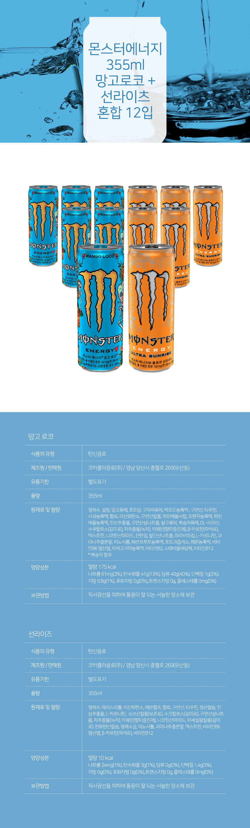 몬스터에너지 355ml 망고로코 + 선라이츠 혼합 12입