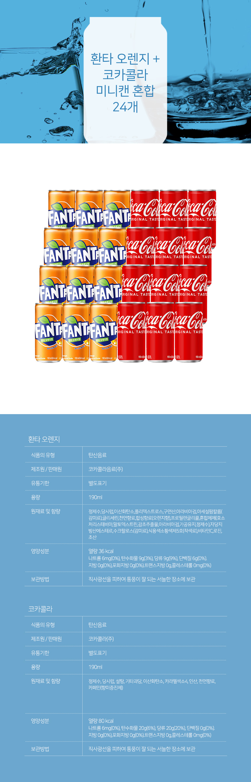 환타 오렌지 + 코카콜라 미니캔 혼합 24개
