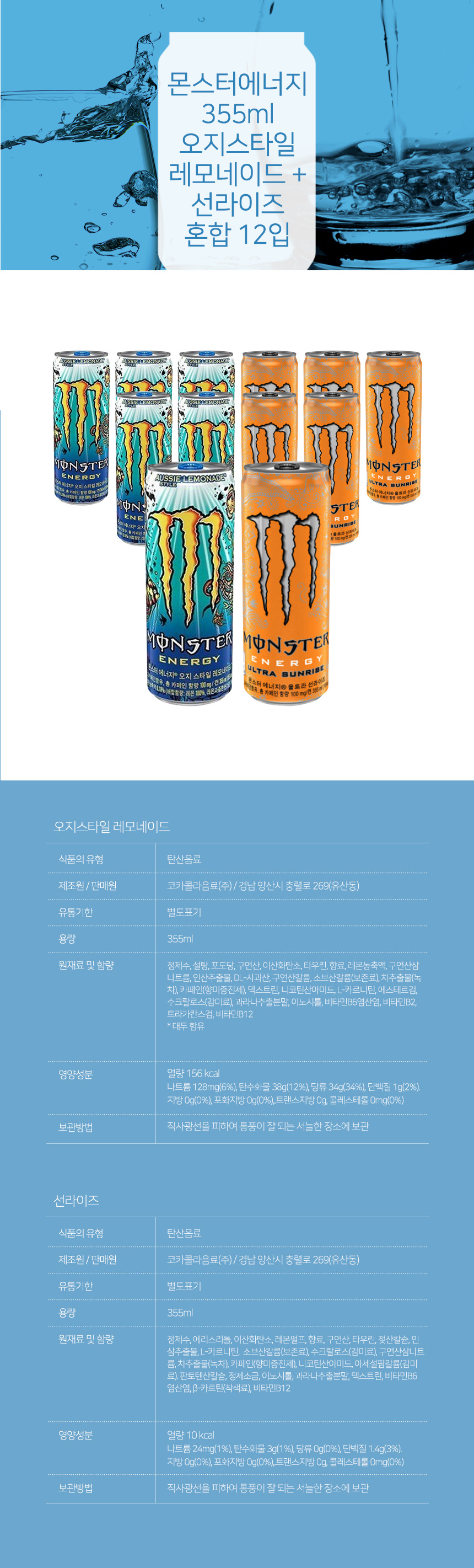 몬스터에너지 355ml 오지스타일 레모네이드 + 선라이츠 혼합 12입