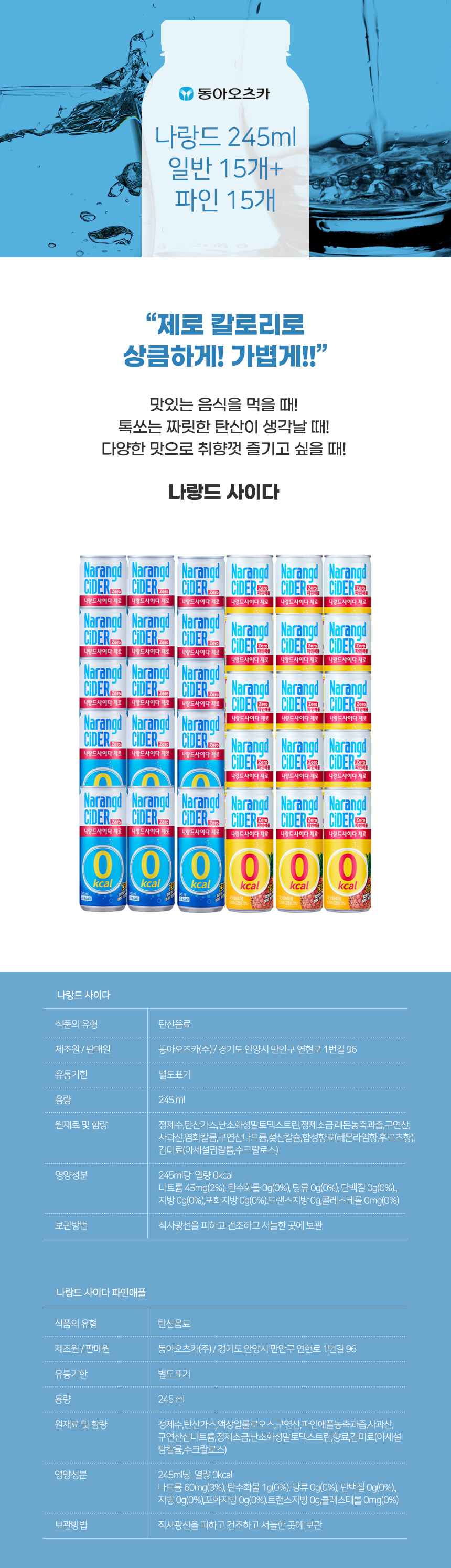 나랑드사이다 245ml 일반 + 파인애플 혼합 30개