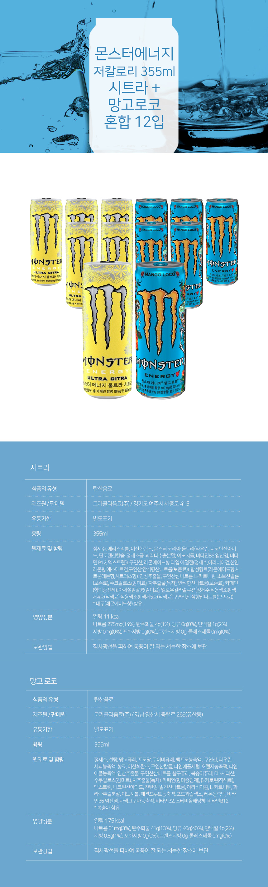 몬스터에너지 저칼로리 355ml 시트라 + 망고로코 혼합 12입