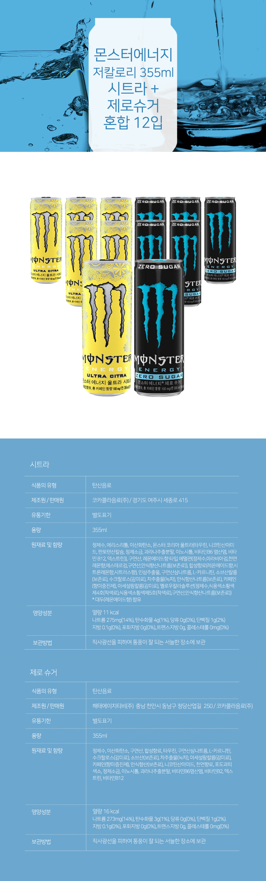 몬스터에너지 저칼로리 355ml 시트라 + 제로슈거 혼합 12입
