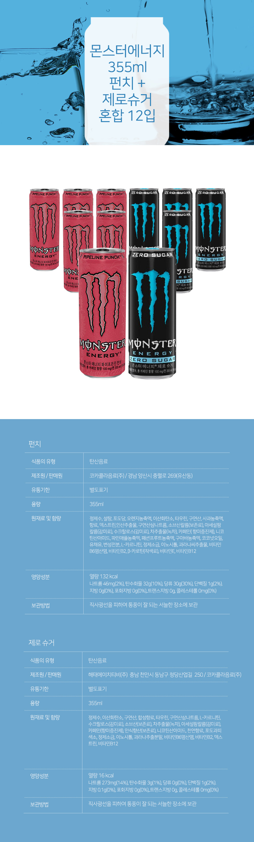 몬스터에너지 355ml 펀치 + 제로슈거 혼합 12입