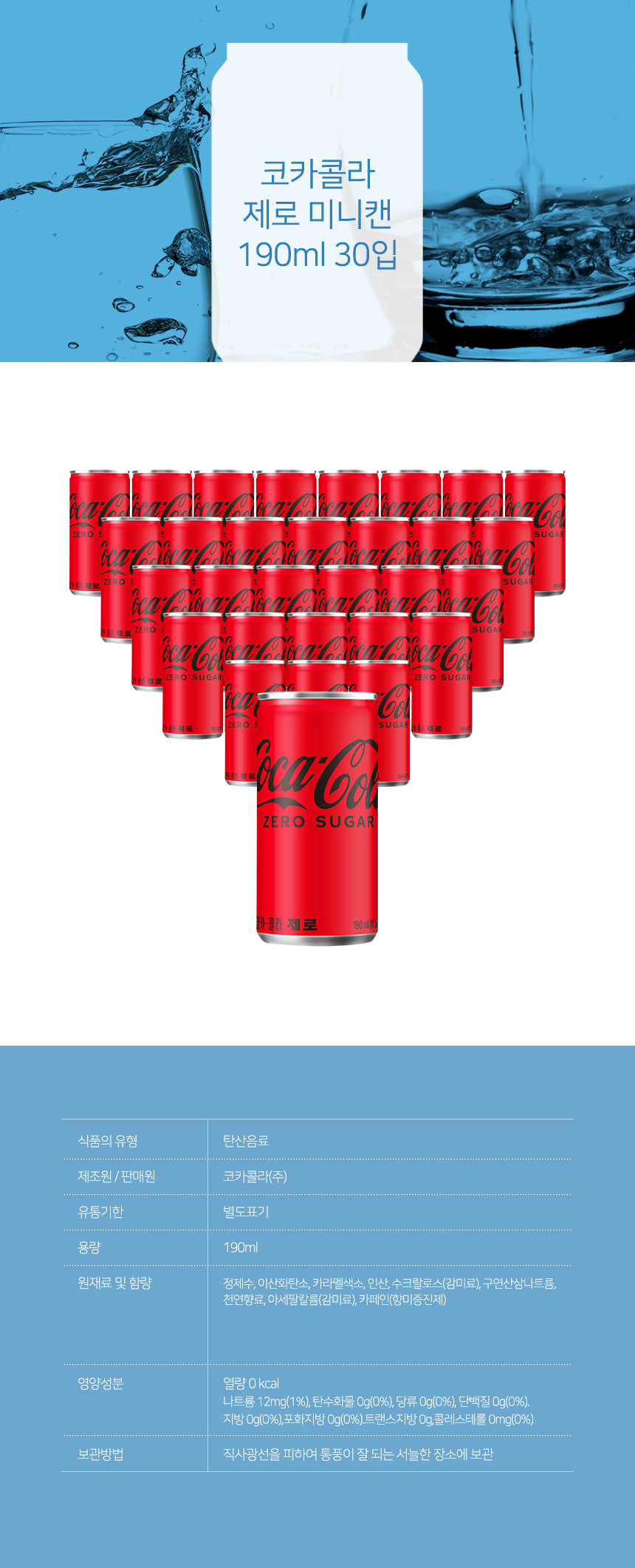 코카콜라 제로 미니캔 190ml 30입