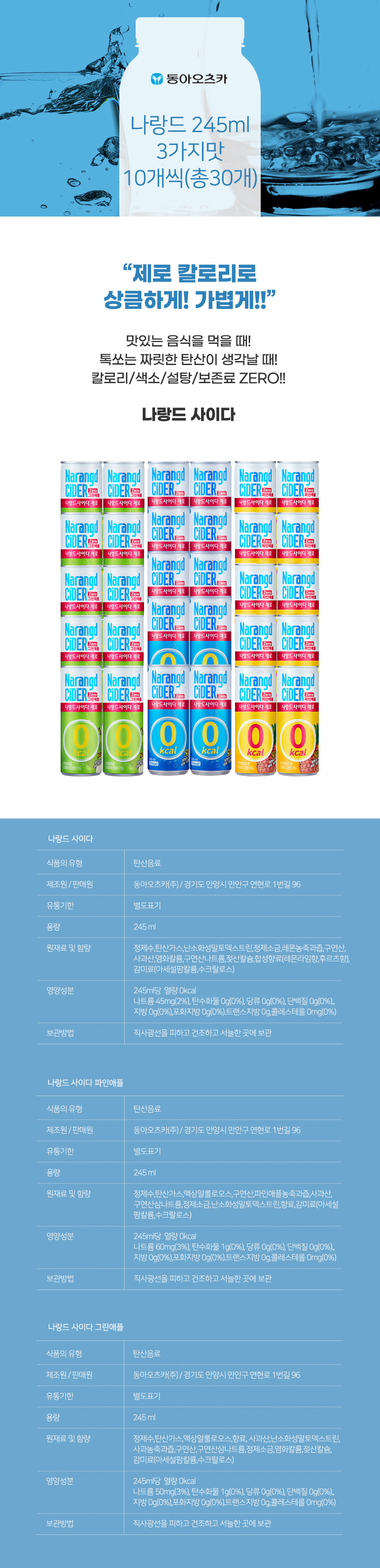 나랑드사이다 245ml 3가지맛 혼합 30입
