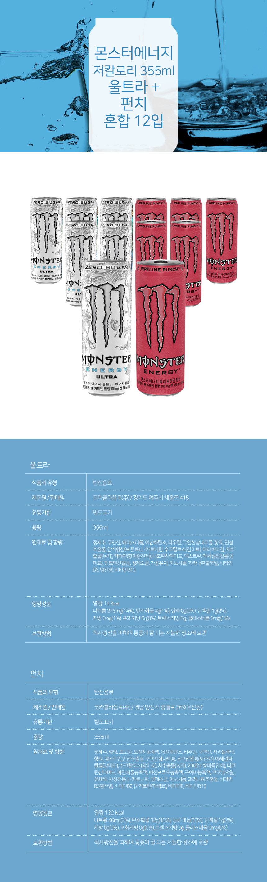 몬스터에너지 저칼로리 355ml 울트라 + 펀치 혼합 12입