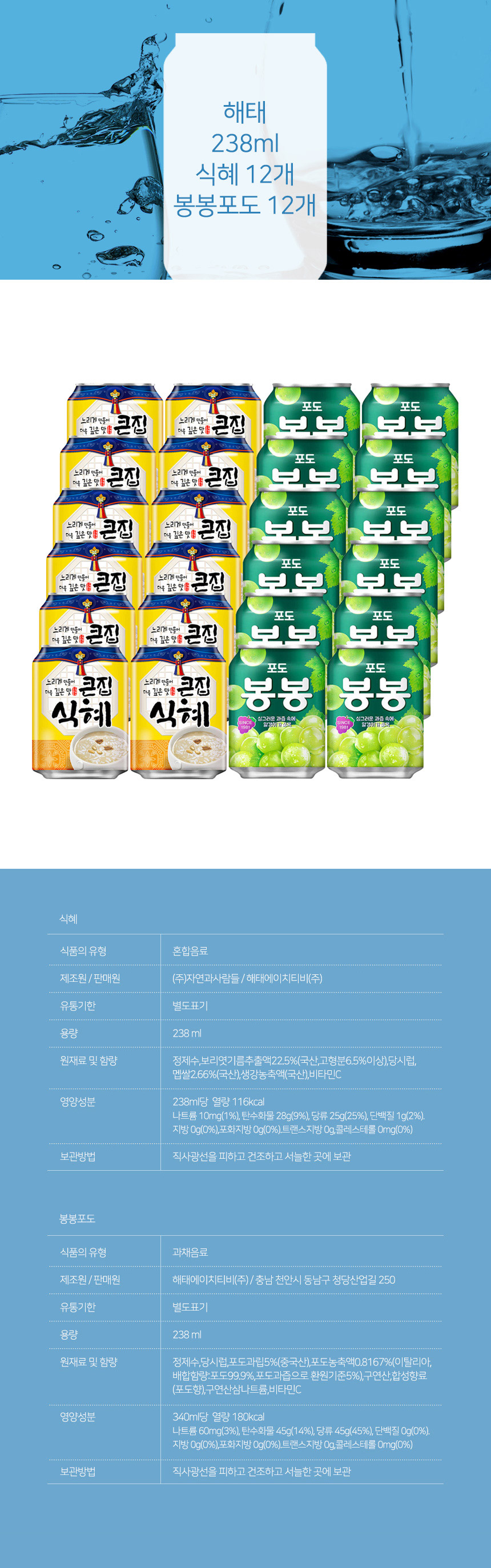해태 식혜 238ml 12개 + 봉봉포도 238ml 12개