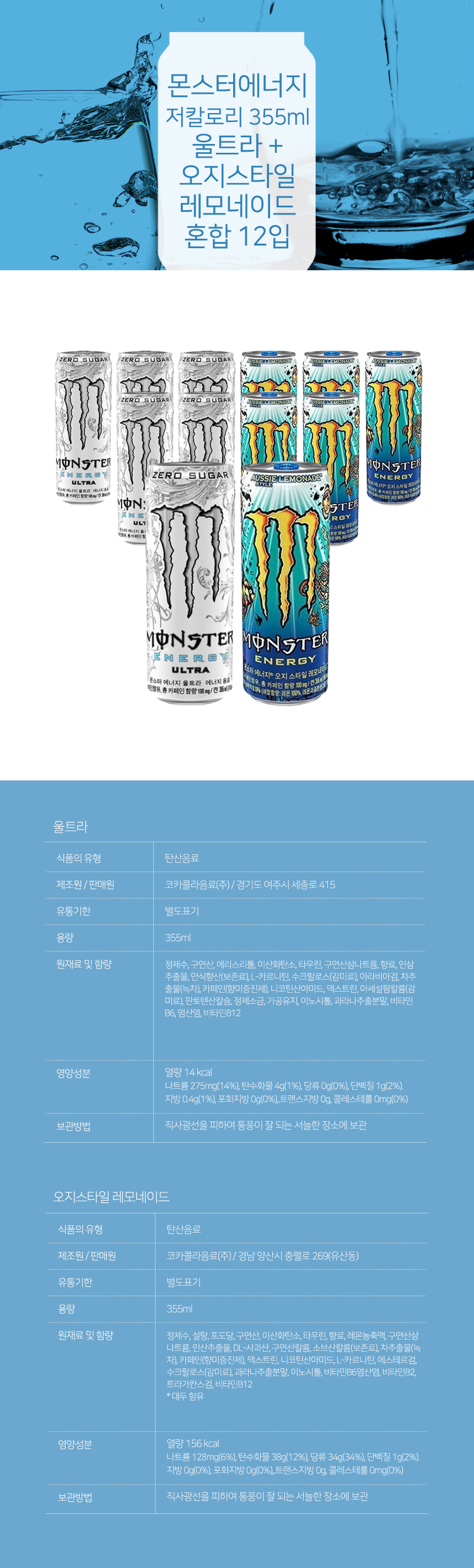 몬스터에너지 저칼로리 355ml 울트라 + 오지스타일 레모네이드 혼합 12입