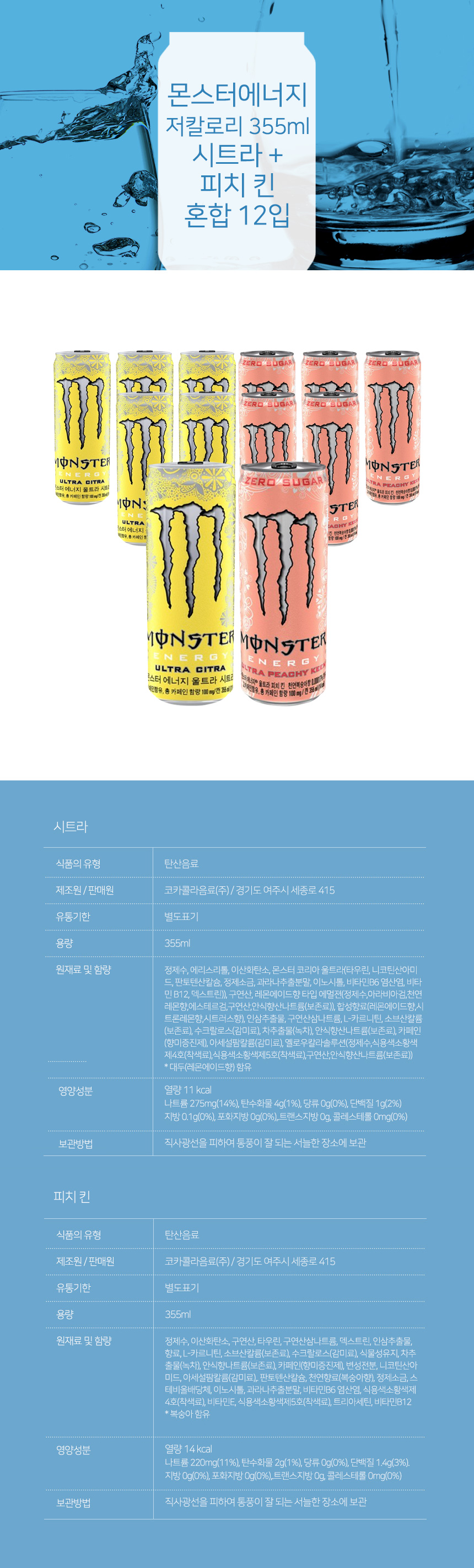 몬스터에너지 저칼로리 355ml 시트라 + 피치 킨 혼합 12입