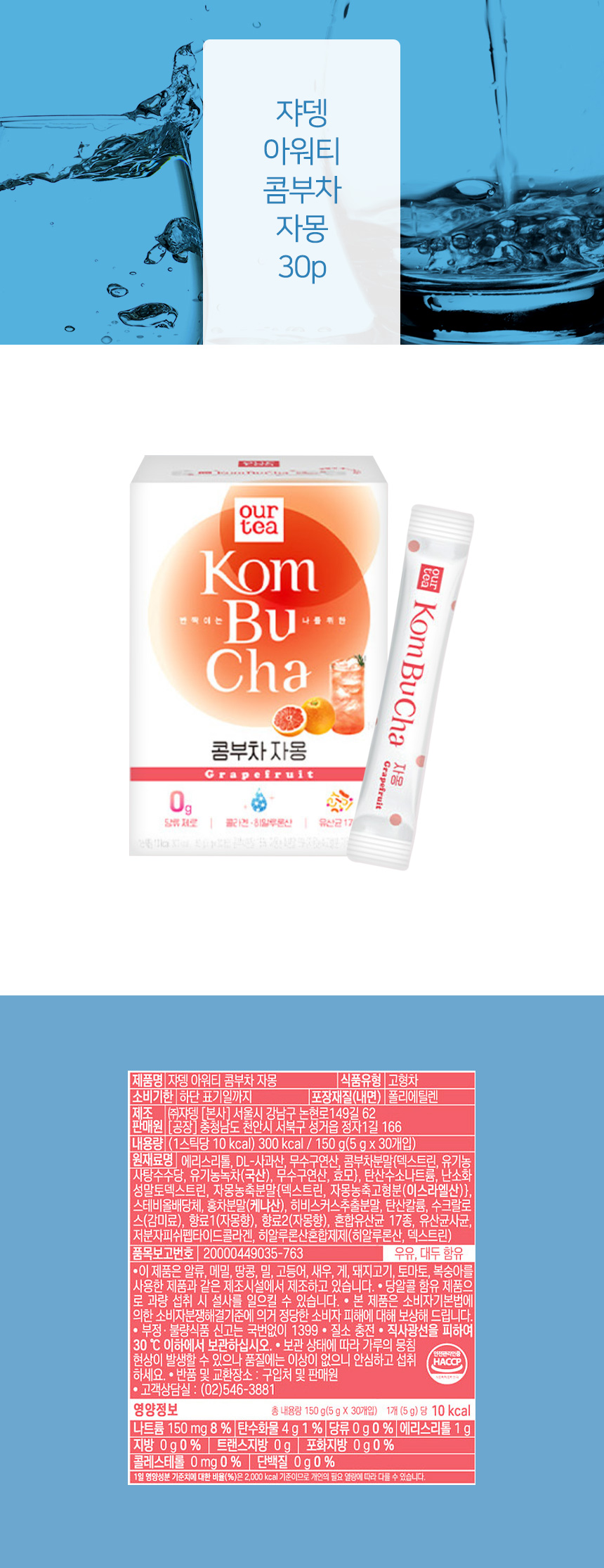 쟈뎅 아워티 콤부차 자몽 30p
